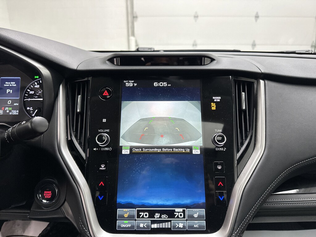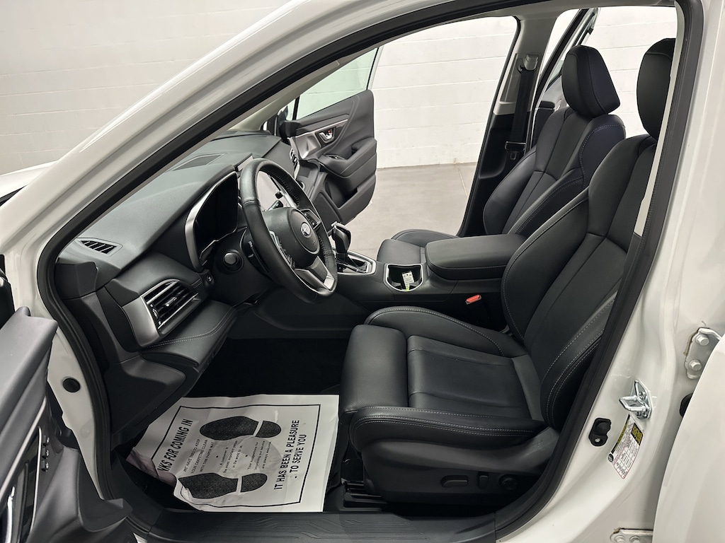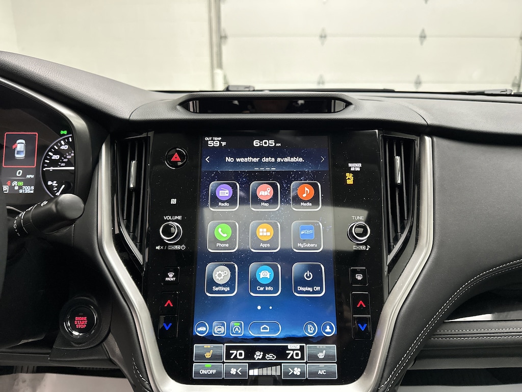Slide into the cabin and youâll instantly feel the sense of refinement that defines Subaruâs flagship sedan. The Slate Black perforated leather seats are plush yet supportive, and both front and rear seats are heated â" so everyone rides in comfort, even on frosty Ohio mornings. A heated steering wheel keeps your hands warm, while dual-zone automatic climate control lets each passenger fine-tune their comfort.