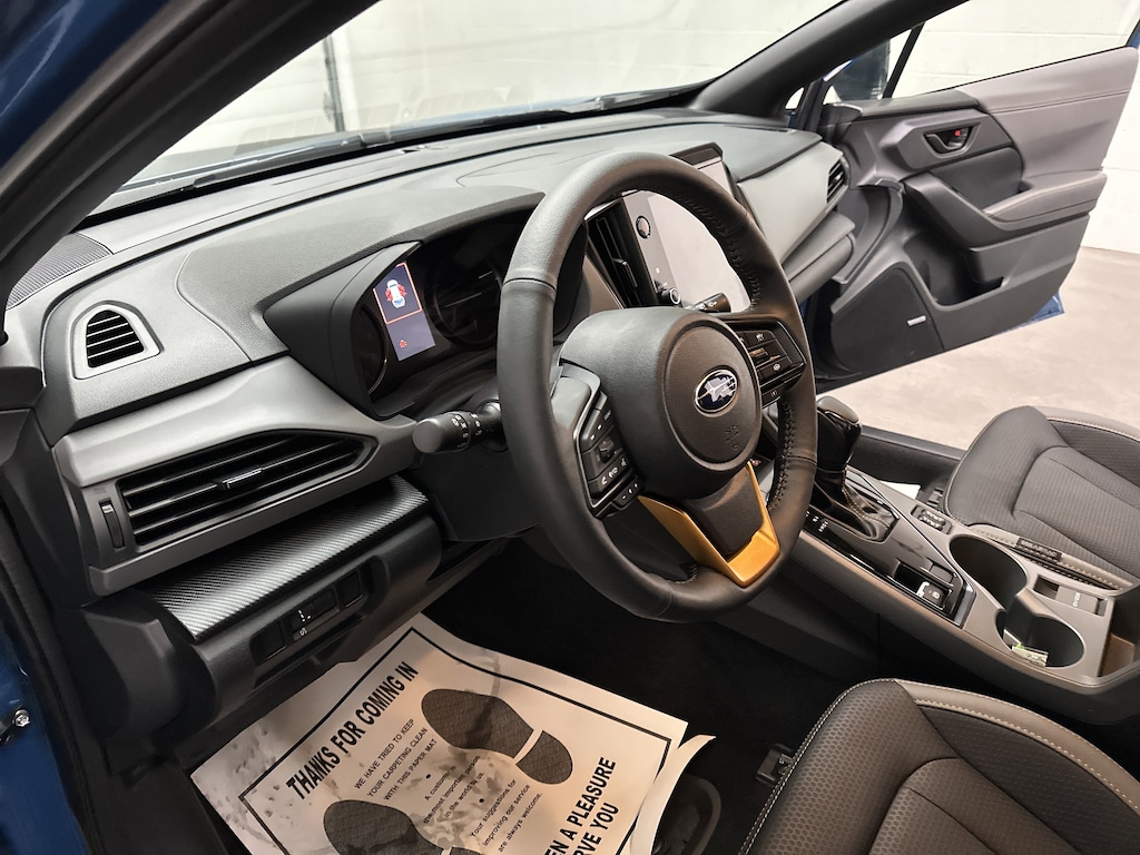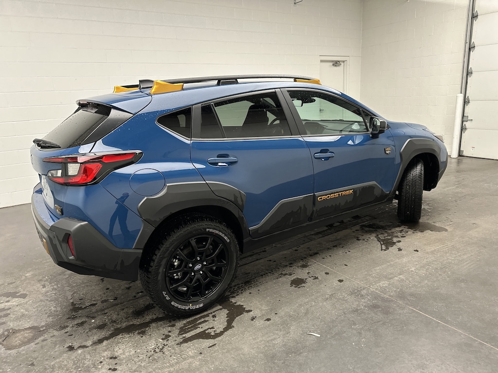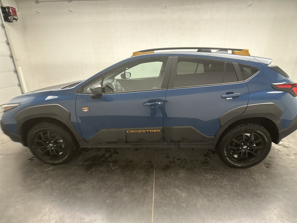 We have on our lot a 2026 Subaru Crosstrek Wilderness SUV - It is finished in Geyser Blue, with a Black StarTex interior. This is currently being used as a dealer demo, which means the next owner will be the first owner on the title. With JUST 2,633 miles, this AWD adventure machine is powered by a 2.5L 4-cylinder BOXER engine running on gasoline, paired with an 8-Speed CVT with manual shift mode. It delivers a strong balance of capability and efficiency at 24 city and 29 highway MPG.