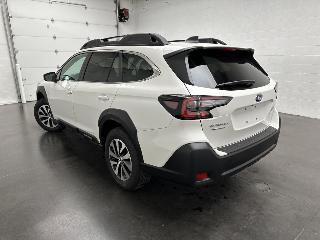 Additional thoughtful touches like the Auto-Dimming Mirror with Compass and HomeLink, All-Weather Floor Liners, and Rear Bumper Cover from the Popular Package #1A make daily driving that much easier and cleaner. The Outback Premiumâs raised suspension, roof rails with integrated crossbars, and 17-inch alloy wheels complete the SUVâs purposeful look and ready-for-anything stance.