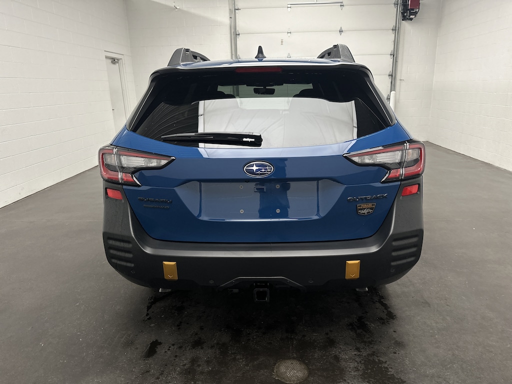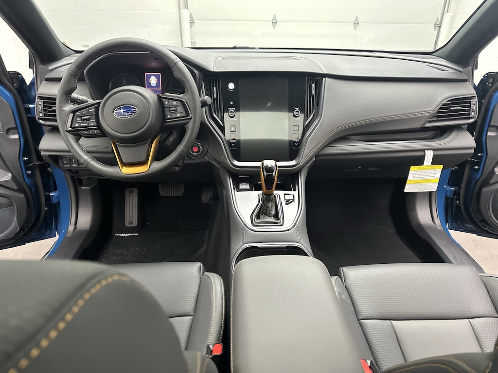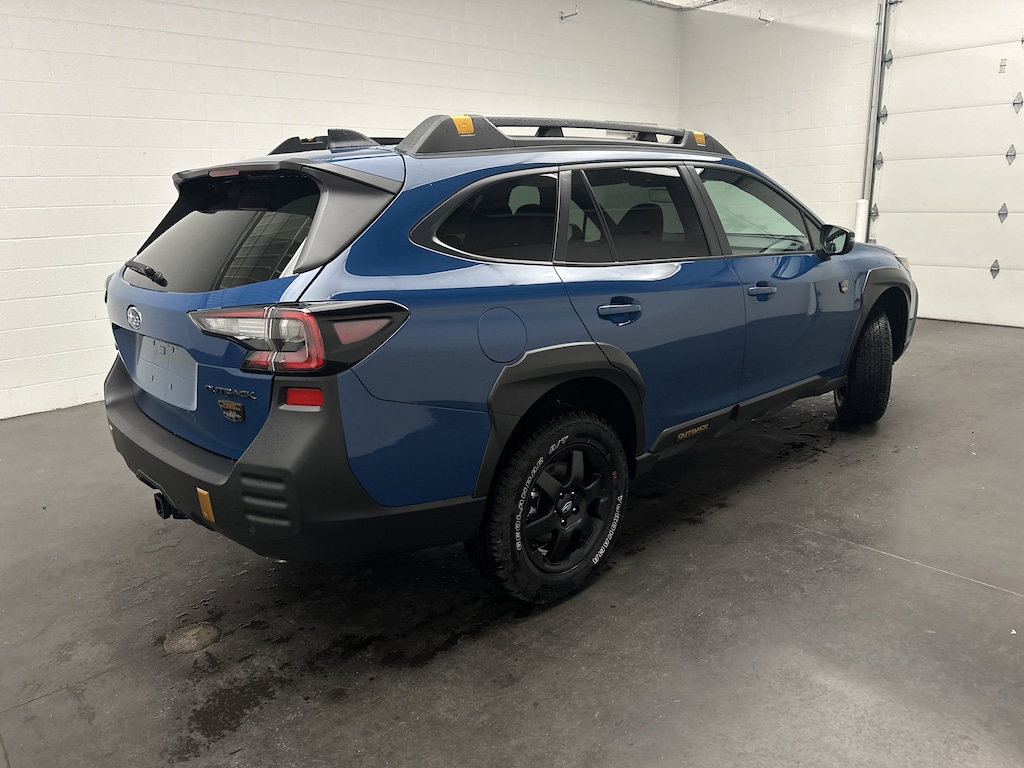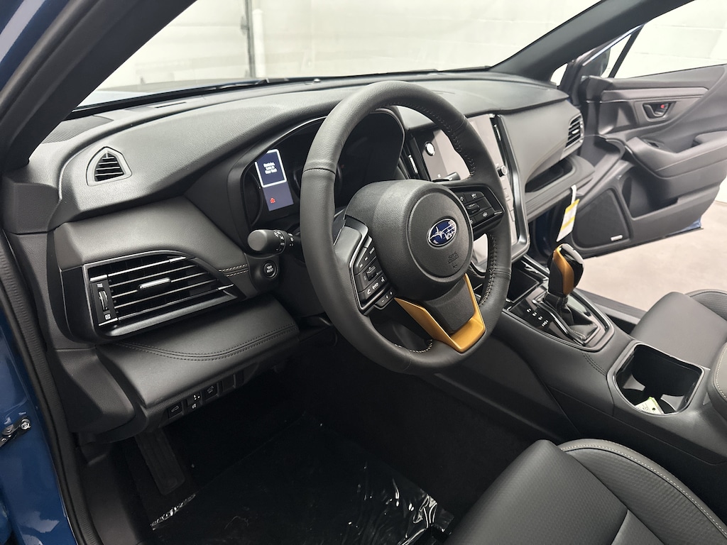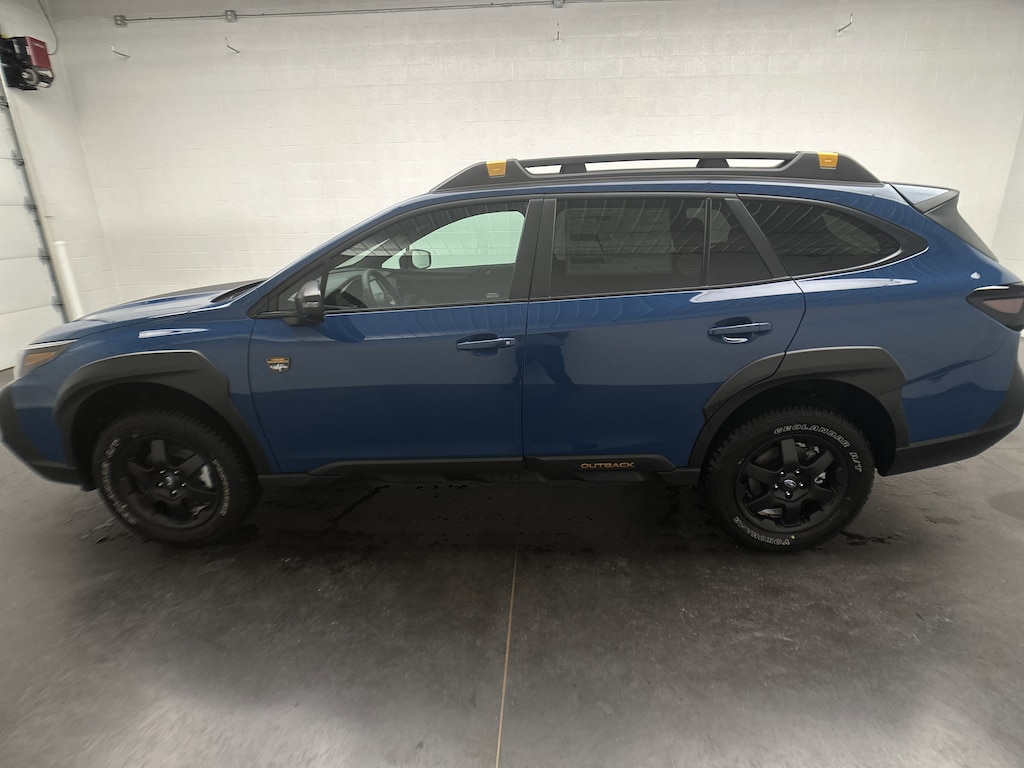 This is a brand new 2025 Subaru Outback Wilderness SUV, finished in the striking Geyser Blue with a rugged Gray StarTex-trimmed interior accented by copper stitching and embossed Wilderness logos. With only 5 miles on the odometer, this Outback is fresh from the factory and includes Subaruâs full factory warranty for complete peace of mind.