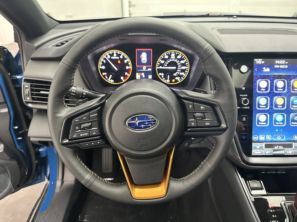 Exterior upgrades such as LED Steering Responsive Headlights, auto-dimming mirrors with approach lighting, roof rails with 700-lb static load capacity, and a factory-installed trailer hitch make this Outback Wilderness both stylish and functional. Its matte black 17-inch alloy wheels, hood graphic, and front skid plate complete the look of an SUV built for the bold.