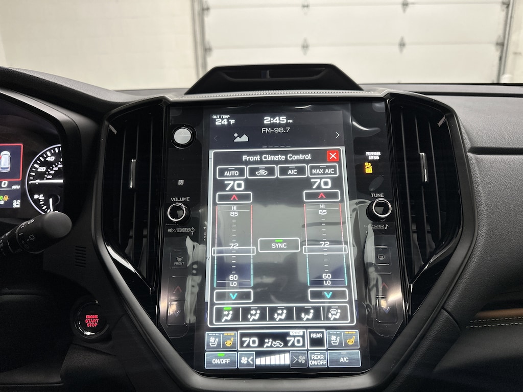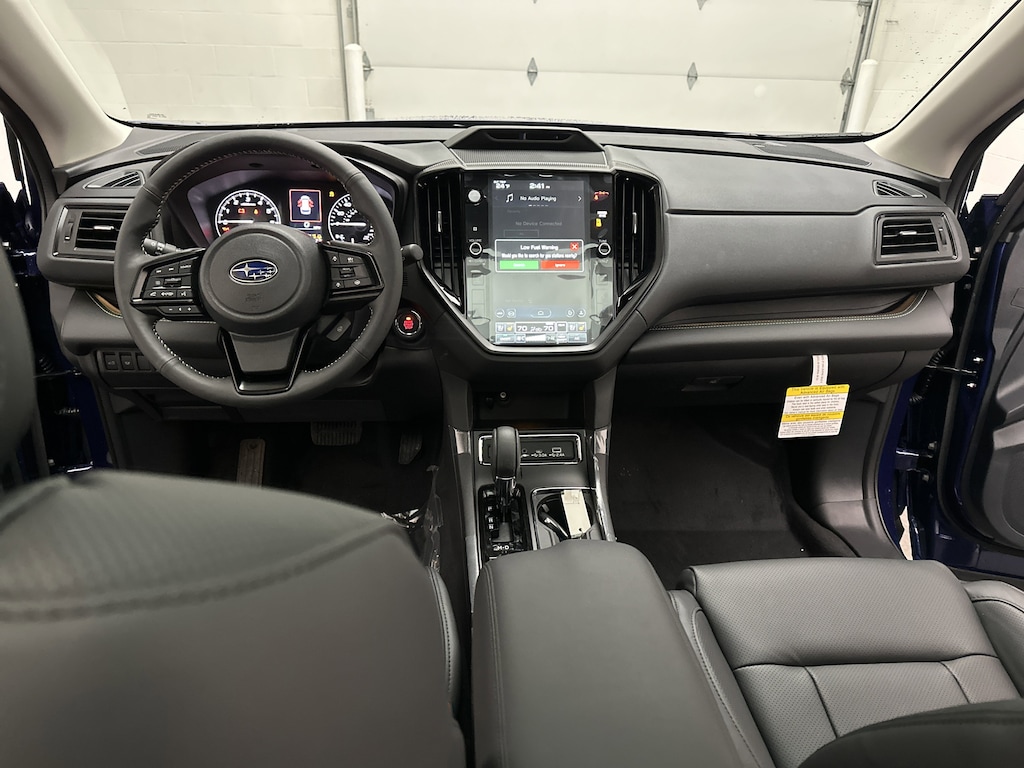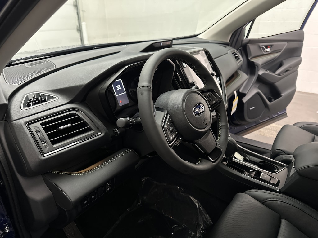Technology takes center stage with Subaru's massive 11.6-inch touchscreen featuring built-in navigation, wireless Apple CarPlay and Android Auto, and a Harman Kardon premium sound system that fills the cabin with crisp, immersive audio. A panoramic power moonroof stretches overhead, flooding the interior with natural light and making every drive feel open and elevated.