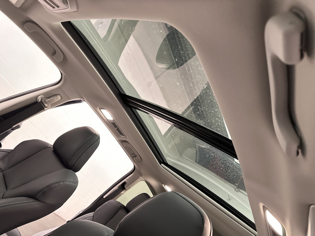 Inside, the cabin is refined and thoughtfully designed. Heated leather front and second-row seats, a heated leather-wrapped steering wheel, and tri-zone automatic climate control keep everyone comfortable year-round. The panoramic power moonroof floods the interior with natural light, making the already spacious three-row layout feel even more open and inviting. Power-adjustable front seats with memory, a power liftgate, and smart keyless access make daily life effortless.