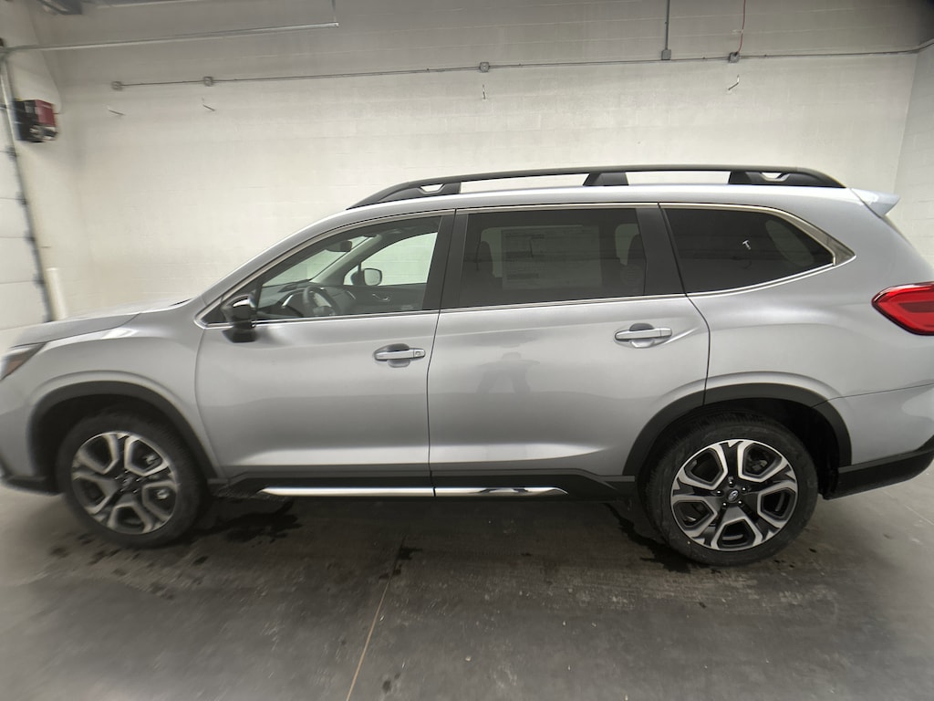 This is a brand new 2026 Subaru Ascent Limited SUV that just arrived, finished in Ice Silver Metallic with a Slate Black leather interior. With only 5 miles on the odometer, this Ascent is completely untitled and includes the full factory warranty, giving you the confidence and peace of mind that come with being the very first owner.