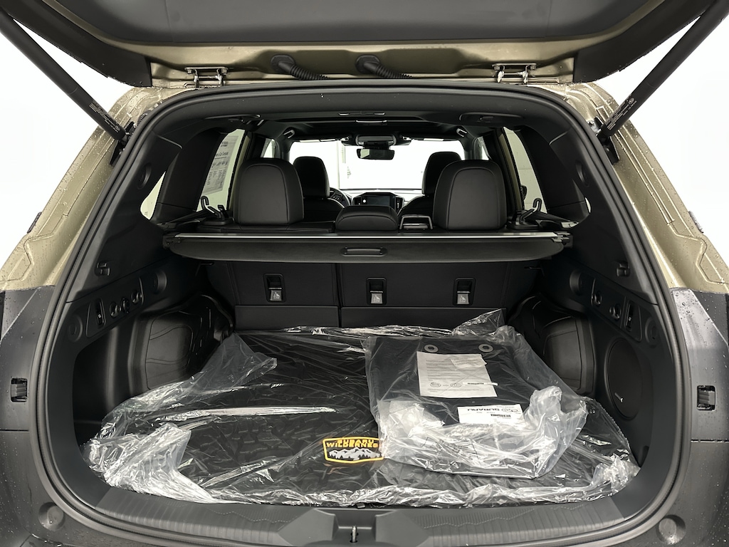 The exterior blends form and function beautifully with matte-black 17-inch alloy wheels wrapped in all-terrain tires, blacked-out heated mirrors with integrated turn signals, a hood graphic and front skid plate, and robust roof rails rated for up to 800 lbs static loadâ"perfect for rooftop tents or heavy adventure gear. The panoramic moonroof lets in fresh air and open-sky views, while LED steering-responsive headlights and hexagon fog lights provide excellent visibility on back roads and trails.