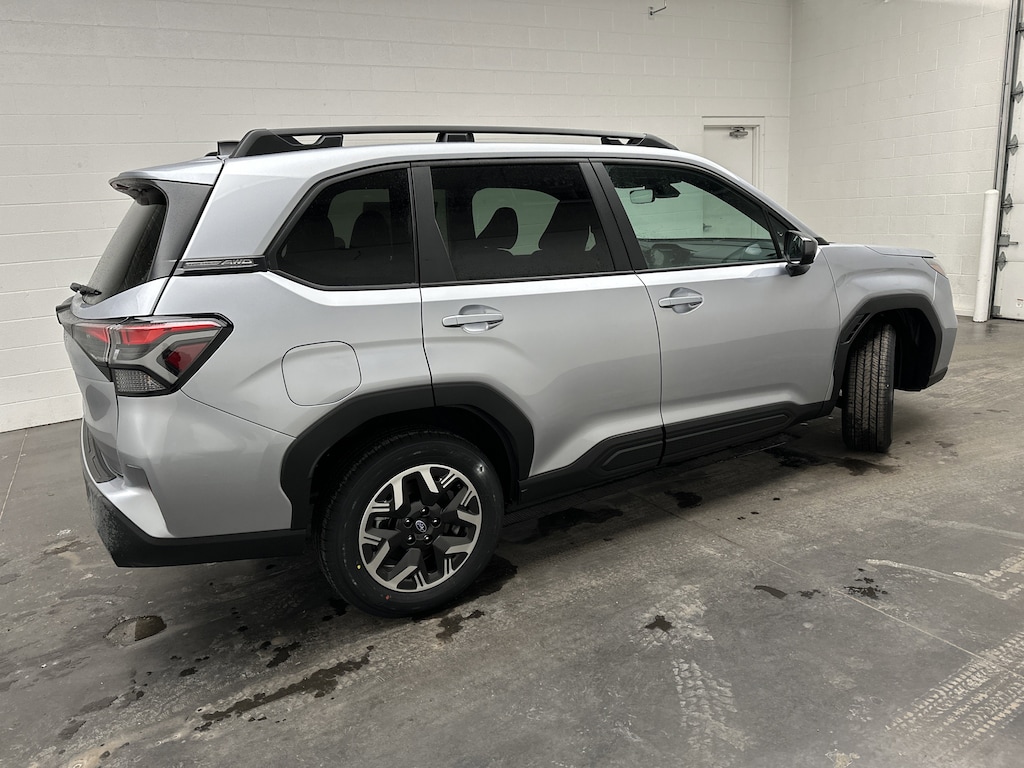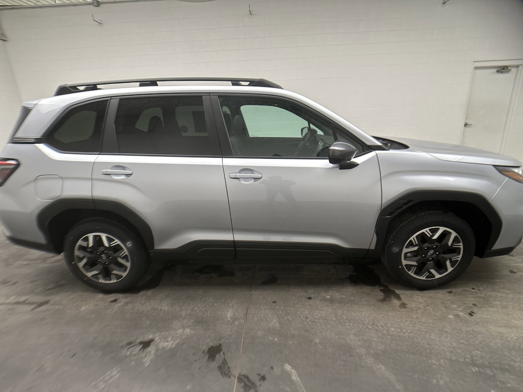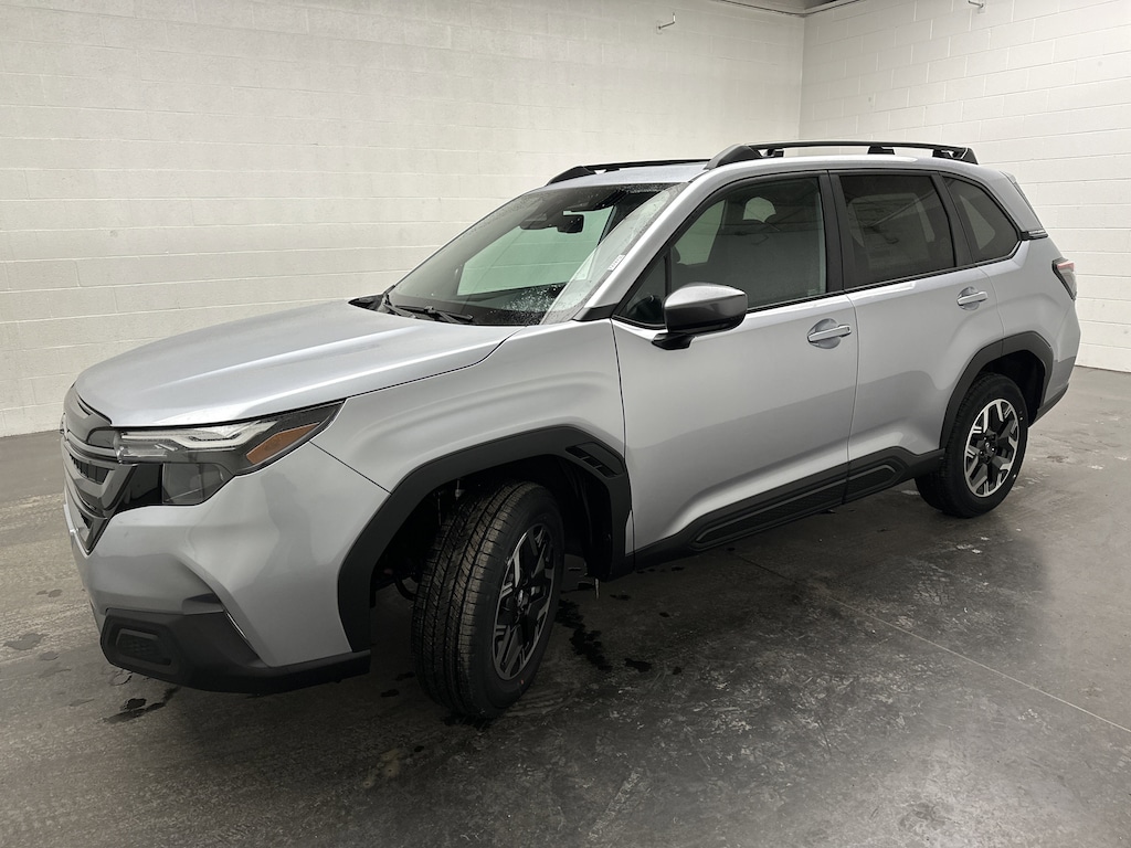 This is a brand new 2026 Subaru Forester Premium SUV that just arrived, finished in Ice Silver Metallic with a Black cloth interior. With just 5 miles on the odometer, this Forester is essentially untouched and ready for its first owner. It is powered by a 2.5L H-4 Subaru Boxer engine running on gasoline, paired with an 8-speed Lineartronic CVT and Subaru's legendary Symmetrical All-Wheel Drive. Fuel economy is an efficient 26 MPG city and 33 MPG highway, making it easy to enjoy daily driving without sacrificing capability. This vehicle is brand new, untitled, and includes the full factory warranty for complete peace of mind.