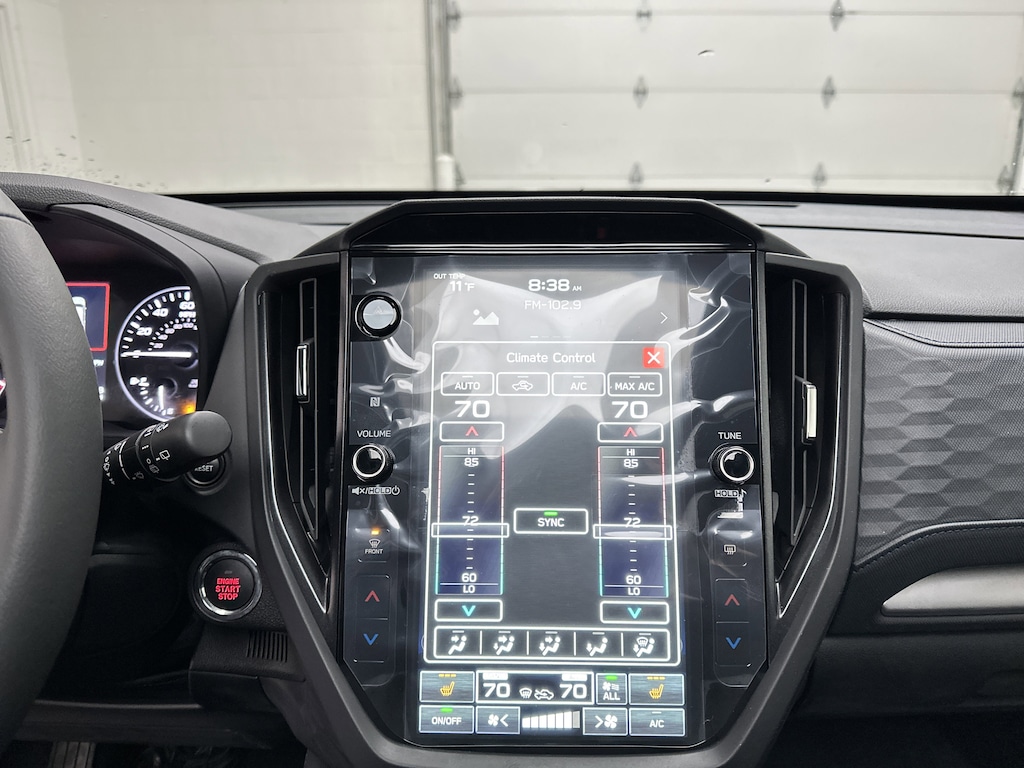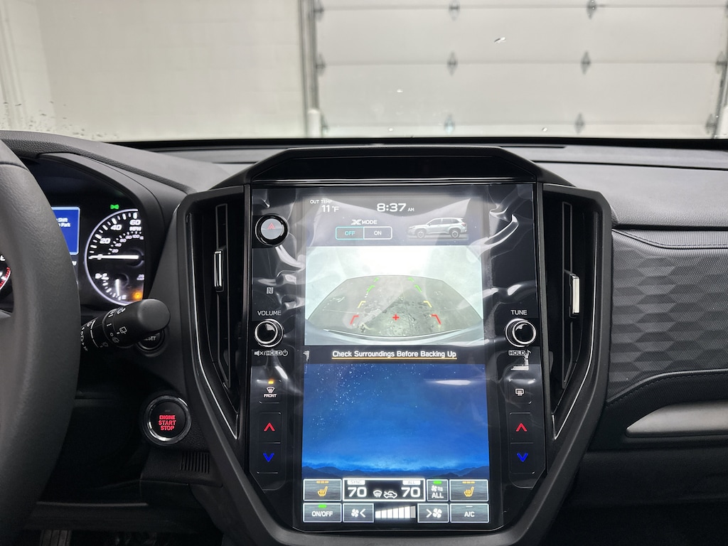 Inside, the cabin is designed to feel open, intuitive, and comfortable. The 11.6-inch Subaru Multimedia Plus touchscreen anchors the dash, offering wireless Apple CarPlay and Android Auto so your navigation, music, and messages are always within reach. Heated front seats add cozy warmth on cold mornings, and the 10-way power driver's seat with lumbar support makes long drives feel effortless. Dual-zone automatic climate control keeps everyone comfortable, while rear-seat air vents and multiple illuminated USB ports ensure passengers stay relaxed and connected.