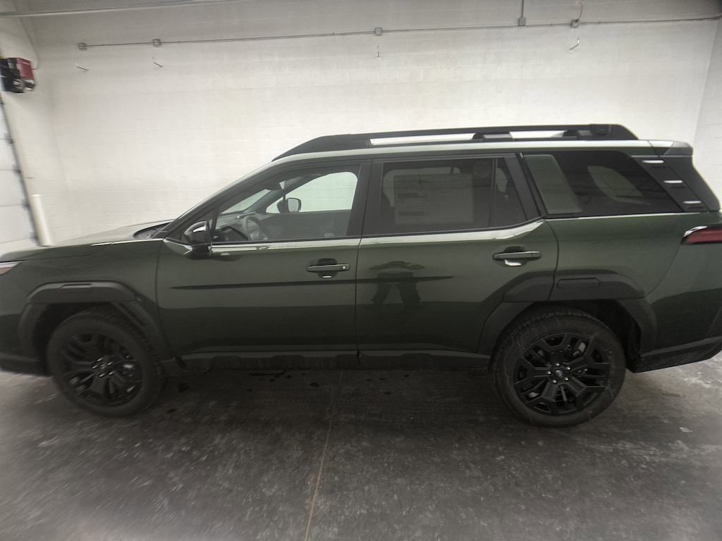 This is a brand new 2026 Subaru Outback Limited XT SUV that just arrived, finished in Deep Emerald Green Pearl with a Slate Black leather interior. The mileage is currently just 5, and this vehicle includes the full factory warranty and is brand new, giving you the confidence and peace of mind that comes with being the first owner.