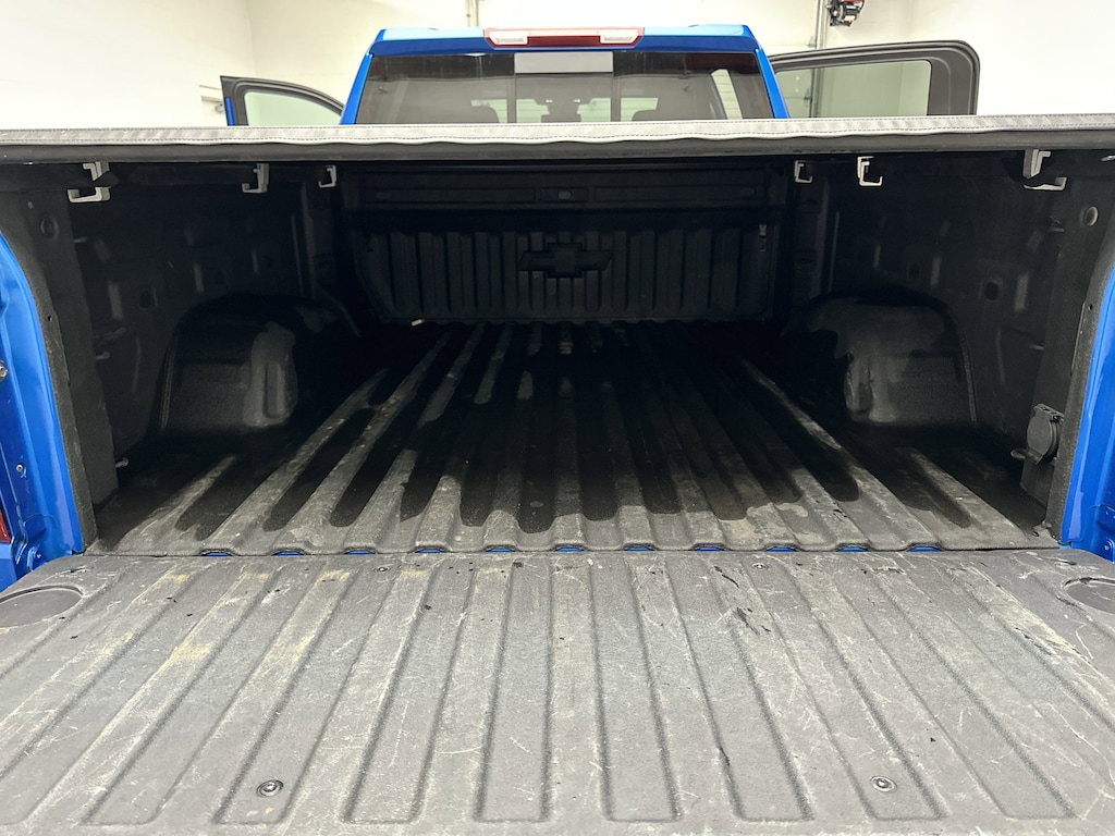 This Trail Boss looks as bold as it feels. The Z71 Off-Road Package adds a factory 2-inch lift, skid plates, red recovery hooks, and monotube shocks for confidence on every terrain. Its high-gloss black 18-inch wheels wrapped in Goodyear Wrangler Territory MT tires, LED signature lighting, and black bowtie emblems create a head-turning presence that means business. The spray-on bedliner, tonneau cover, CornerStep rear bumper, and 12 fixed cargo tie-downs make this truck just as functional as it is stylish, ready for hauling gear, tools, or weekend toys.