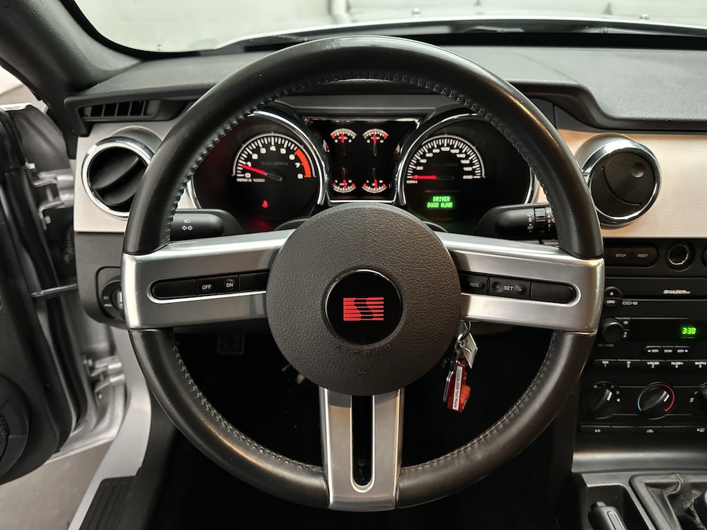 This Mustang speaks directly to drivers who want the raw, classic American muscle car experience. The moment you slide into the sculpted leather bucket seats, grip the leather-wrapped steering wheel, and hear that V8 fire to life through its stainless steel dual exhaust, you immediately feel connected to the road.