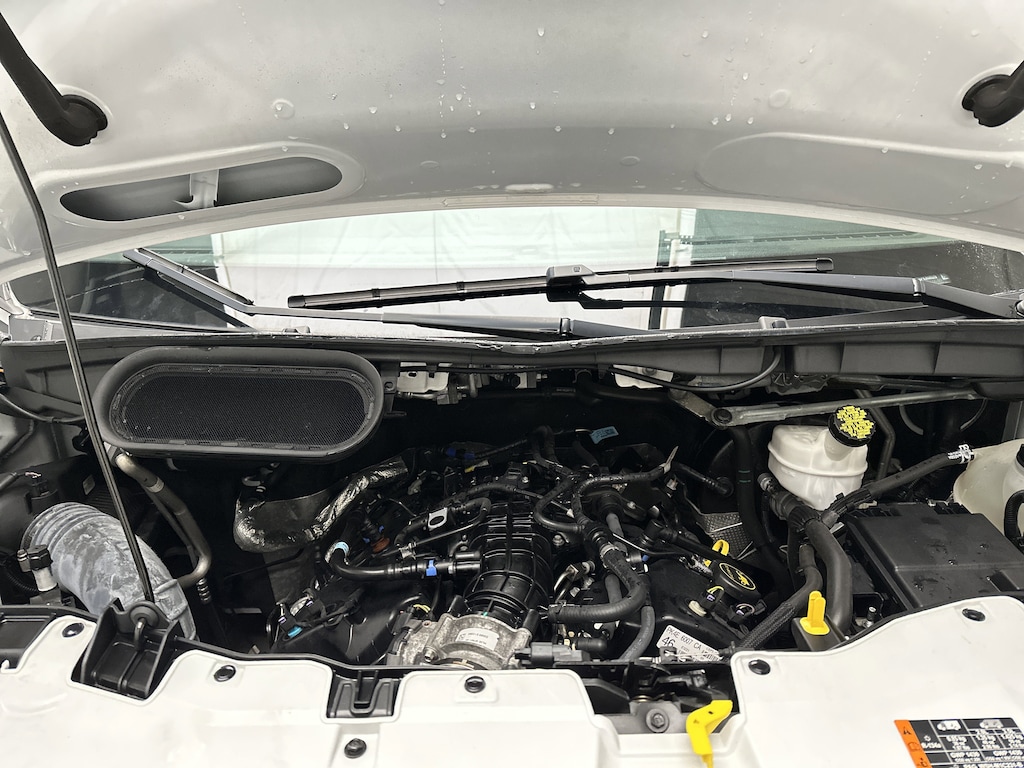 Practical touches like power-folding heated mirrors, sliding side passenger door, split swing-out rear cargo doors, privacy glass, rear defroster, and multiple 12V outlets make daily operation simple and efficient. With a 9250 lb GVWR package and a substantial payload capacity, this Transit is ready for serious work.