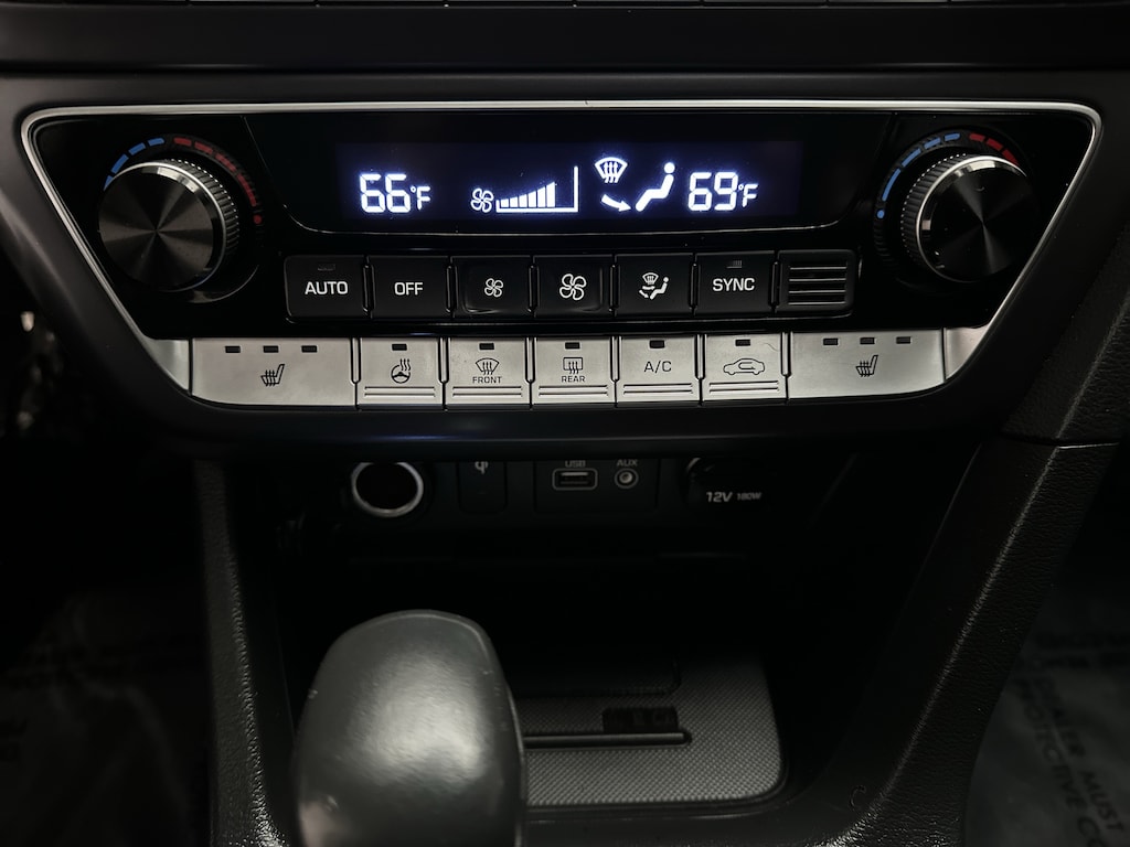 Soft ambient lighting from the illuminated door sills and the clean, piano-black interior accents give the cabin a polished, premium look. These comfort and design details align perfectly with the features listed on the window sticker, including the sport seats, touchscreen display, Blue Link connectivity, and proximity key system .