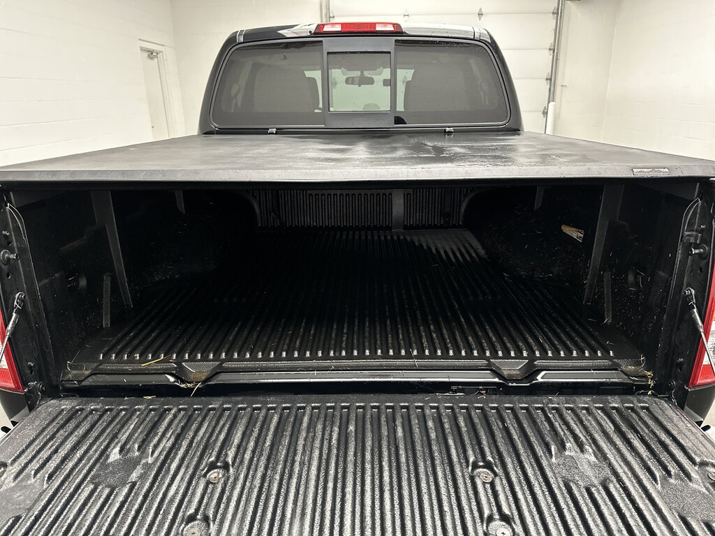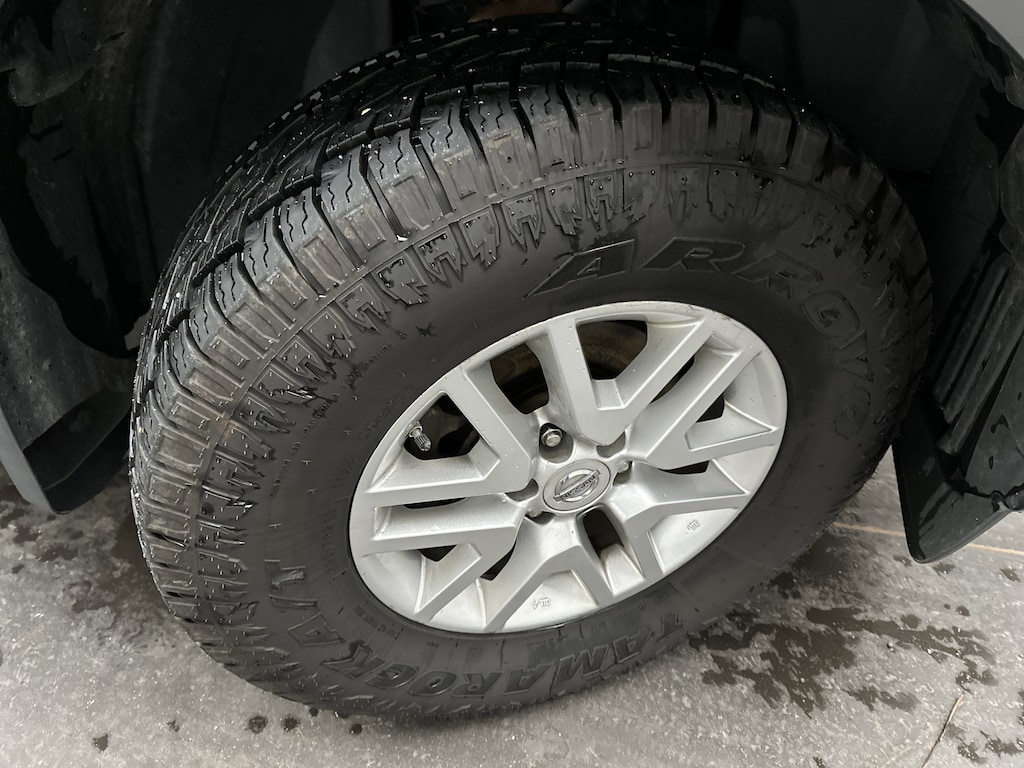 This particular Frontier is equipped with the Bed Liner/Trailer Hitch Package, giving you a ready-to-work bed that stands up to daily use and a trailer hitch thatâs perfect for small campers, utility trailers, or weekend gear. The 16-inch alloy wheels, chrome rear step bumper, privacy glass, and sliding rear window give it a clean, timeless look.