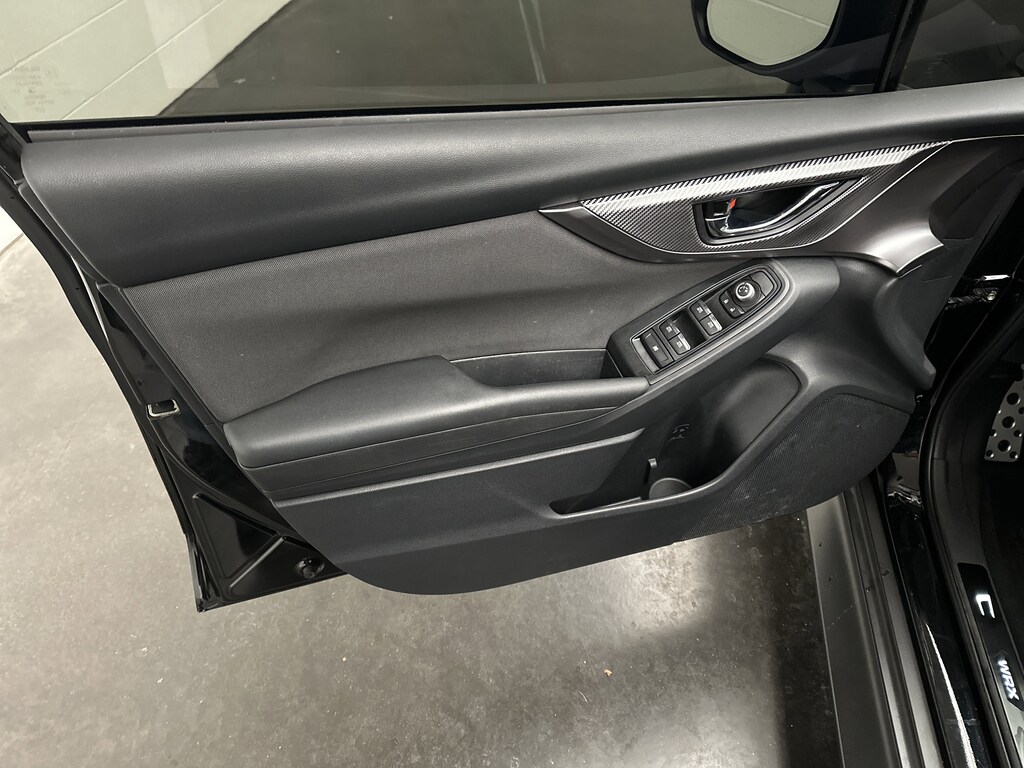 On the outside, this WRX has the aggressive stance you expect, thanks to the 18-inch dark gray alloy wheels, summer performance tires, lip spoiler, fog lamps, LED headlights with auto-leveling, and the body-colored aero accents that give it a sharp, road-hugging look. Thoughtful factory add-ons like splash guards, door edge guards, illuminated side sills, all-weather floor liners, a cargo tray, seatback protectors, and even the vortex generator give the car both extra protection and a sportier presence.