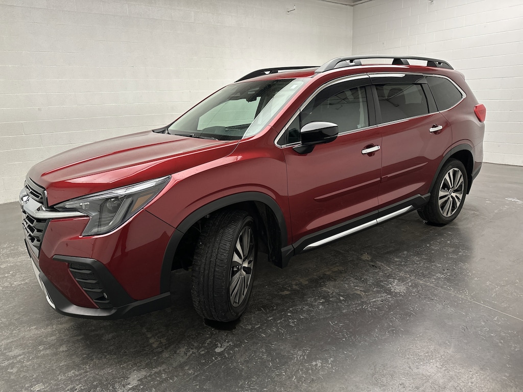 We've just taken in a a JUST-LIKE-NEW 2024 Subaru Ascent Touring SUV - it's finished in Crimson Red Pearl, with a Slate Black w/Silver perforated Nappa leather interior. This Ascent currently has just 4,007 miles and is powered by a turbocharged 2.4L intercooled Boxer 4-cylinder engine running on gasoline, paired with an 8-speed CVT and Subaru's legendary Symmetrical All-Wheel Drive. EPA estimates come in at 19 MPG city and 25 MPG highway, making this a confident and efficient choice for a full-size family SUV.