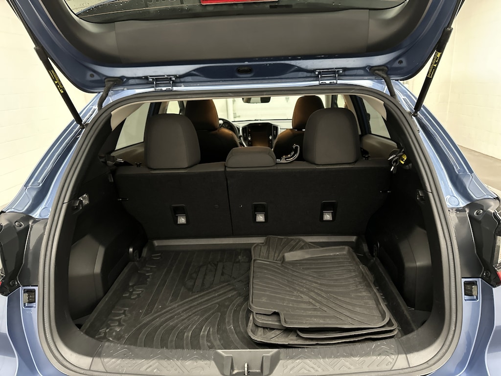 Practical touches are everywhere. Roof rails are ready for bikes, kayaks, or cargo carriers, and the 60-40 folding rear seats open up a flexible cargo area for gear, groceries, or weekend projects. All-weather floor liners and a rear bumper cover help protect the interior when life gets messy, making this Crosstrek especially appealing for outdoor enthusiasts and pet owners.